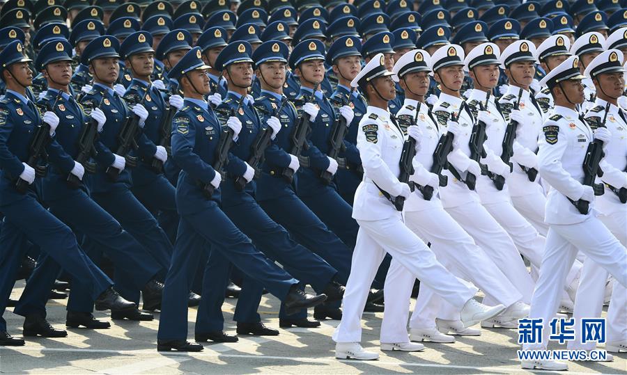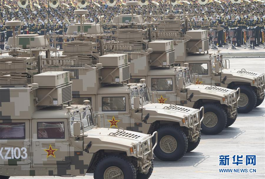 10月1日上午,庆祝中华人民共和国成立70周年大会在北京天安门广场隆重举行。这是信息作战第1方队。 新华社记者 邢广利 摄