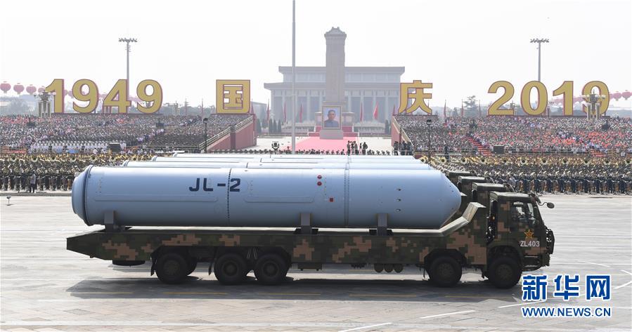 10月1日上午,庆祝中华人民共和国成立70周年大会在北京天安门广场隆重举行。这是巨浪-2导弹方队接受检阅。 新华社记者 高洁 摄