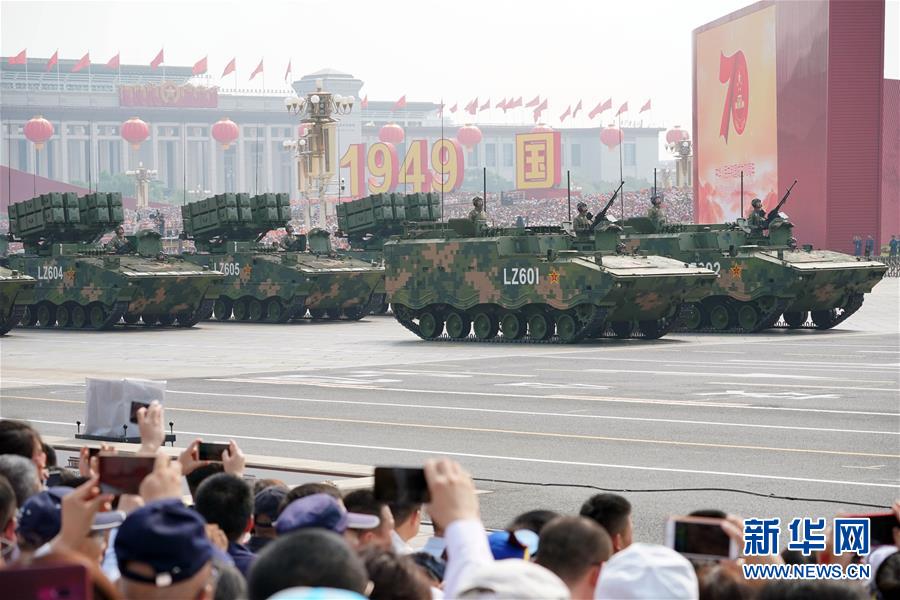 10月1日上午,庆祝中华人民共和国成立70周年大会在北京天安门广场隆重举行。 这是受阅部队接受检阅。 新华社记者张宏祥摄