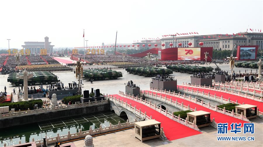 10月1日上午,庆祝中华人民共和国成立70周年大会在北京天安门广场隆重举行。这是东风-26核常兼备导弹方队接受检阅。 新华社记者 兰红光 摄