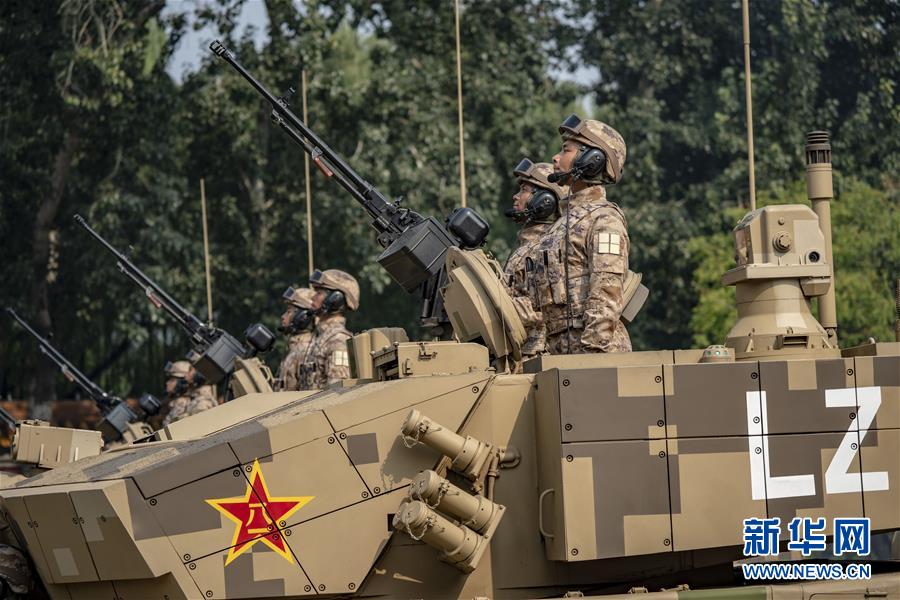 10月1日上午,庆祝中华人民共和国成立70周年大会在北京天安门广场隆重举行。这是受阅的空降兵战车方队。 新华社记者 马宁 摄