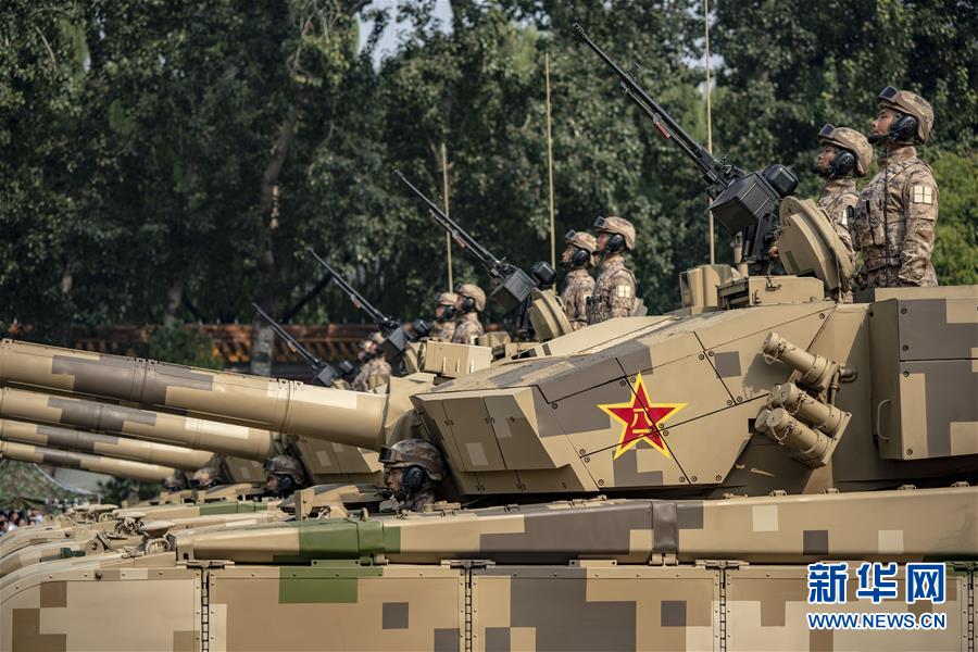 10月1日上午,庆祝中华人民共和国成立70周年大会在北京天安门广场隆重举行。 这是受阅的坦克方队。 新华社记者江文耀摄