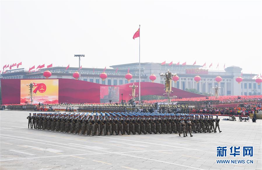 10月1日上午,庆祝中华人民共和国成立70周年大会在北京天安门广场隆重举行。这是维和部队方队。 新华社记者李欣摄