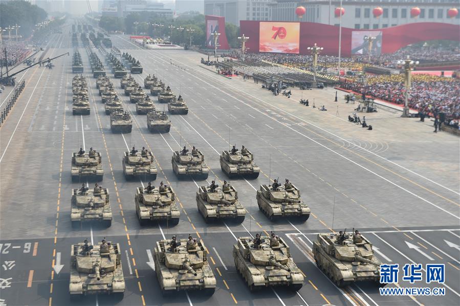 10月1日上午,庆祝中华人民共和国成立70周年大会在北京天安门广场隆重举行。这是坦克方队。 新华社记者徐昱摄