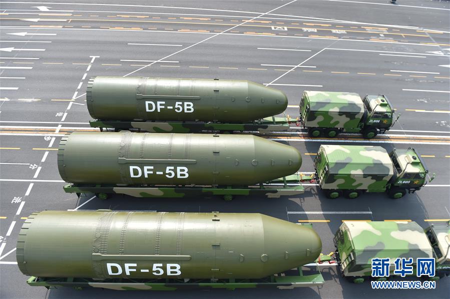 10月1日上午,庆祝中华人民共和国成立70周年大会在北京天安门广场隆重举行。这是东风-5B核导弹方队。 新华社记者徐昱摄