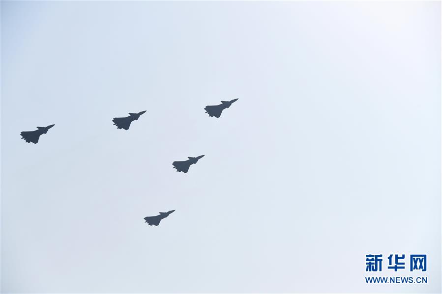 10月1日上午,庆祝中华人民共和国成立70周年大会在北京天安门广场隆重举行。这是歼击机梯队。 新华社记者陈晔华摄