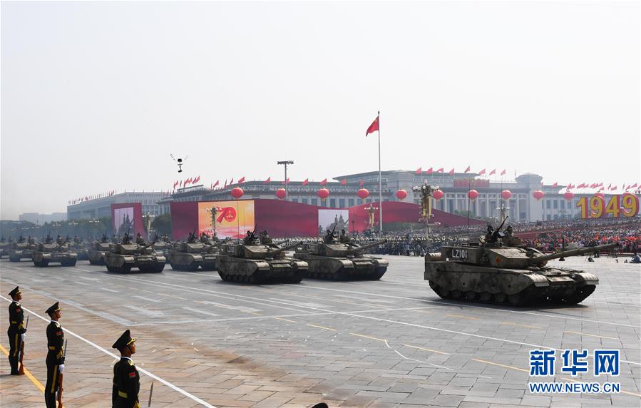 10月1日上午,庆祝中华人民共和国成立70周年大会在北京天安门广场隆重举行。这是坦克方队。 新华社记者李欣摄