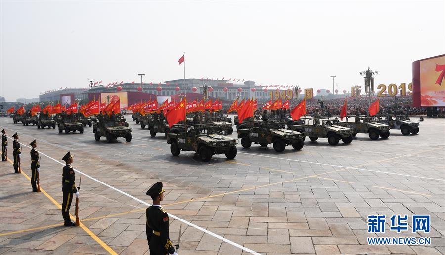 10月1日上午,庆祝中华人民共和国成立70周年大会在北京天安门广场隆重举行。这是受阅的轻型装甲方队。 新华社记者 郭绪雷 摄