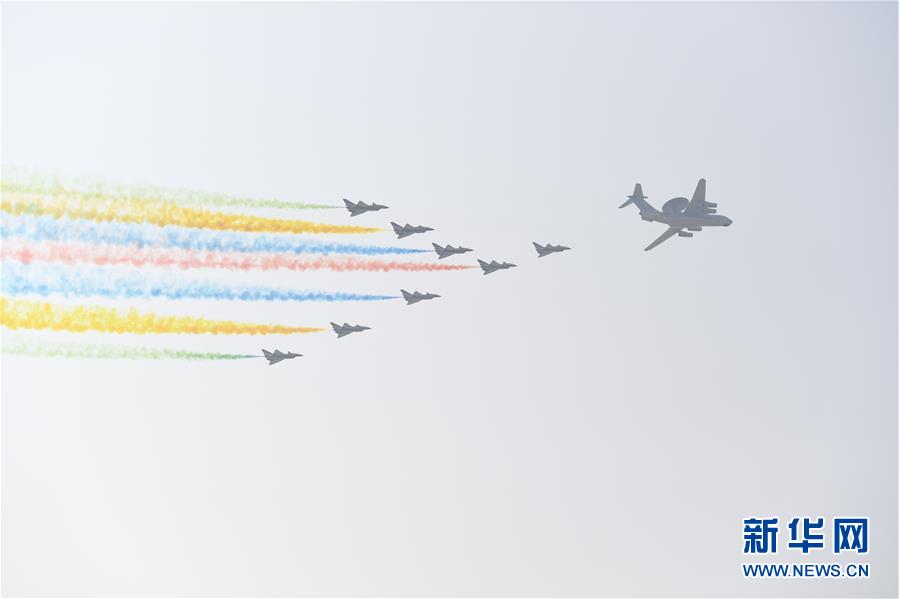 10月1日上午,庆祝中华人民共和国成立70周年大会在北京天安门广场隆重举行。这是领队机梯队。 新华社记者陈晔华摄