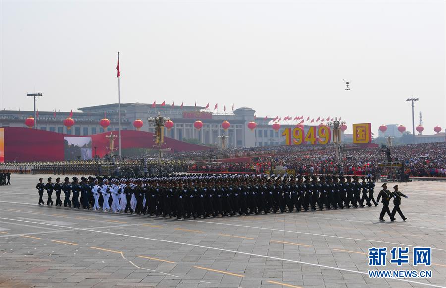 10月1日上午,庆祝中华人民共和国成立70周年大会在北京天安门广场隆重举行。这是联勤保障部队方队。 新华社记者李欣摄