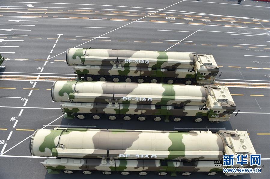 10月1日上午,庆祝中华人民共和国成立70周年大会在北京天安门广场隆重举行。这是东风-31甲改核导弹方队。 新华社记者徐昱摄