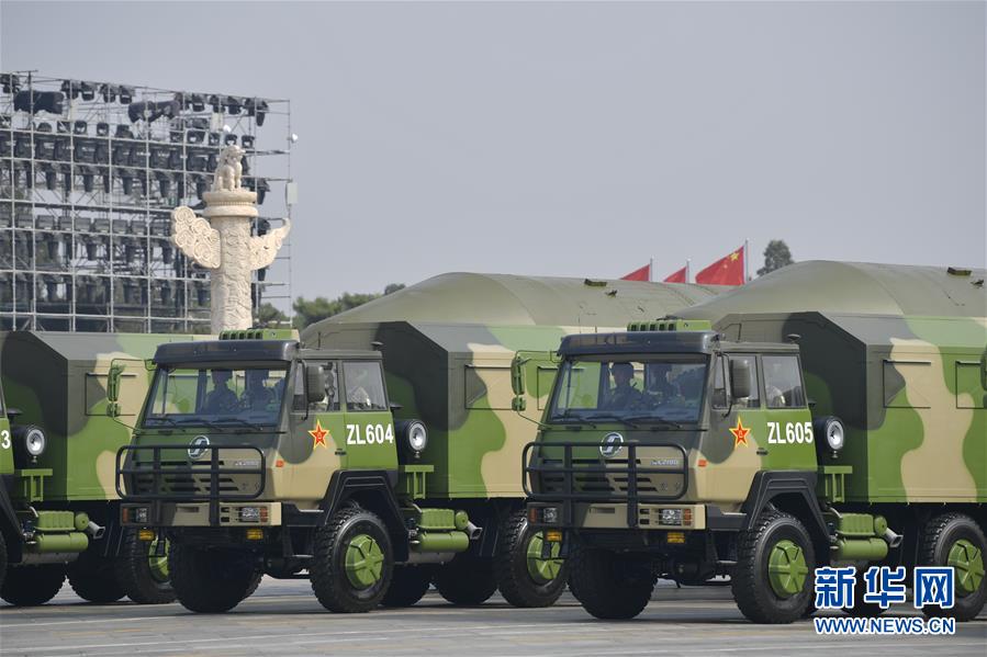 10月1日上午,庆祝中华人民共和国成立70周年大会在北京天安门广场隆重举行。 这是东风-5B核导弹方队通过天安门广场。 新华社记者 刘潺 摄