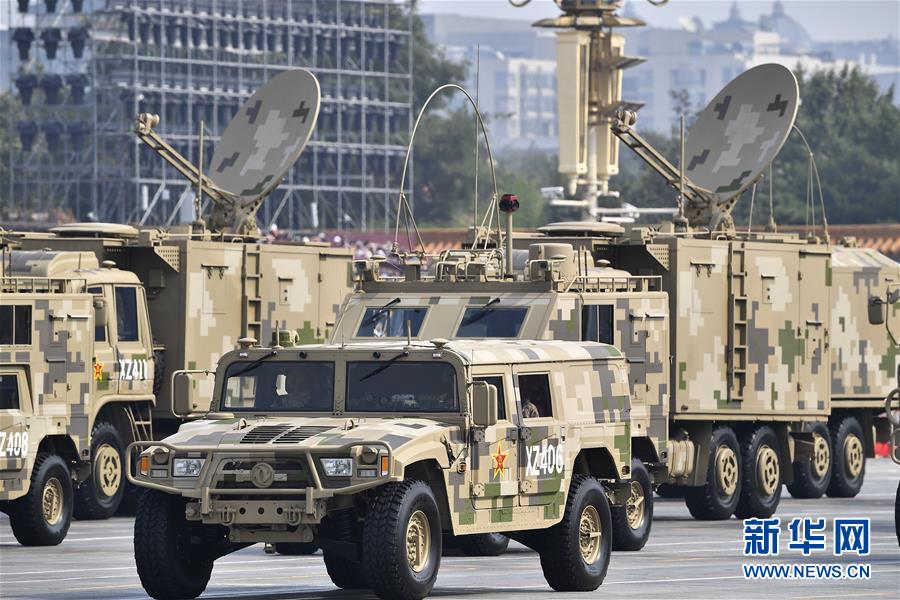 10月1日上午,庆祝中华人民共和国成立70周年大会在北京天安门广场隆重举行。 这是信息作战第4方队。 新华社记者 陈益宸 摄