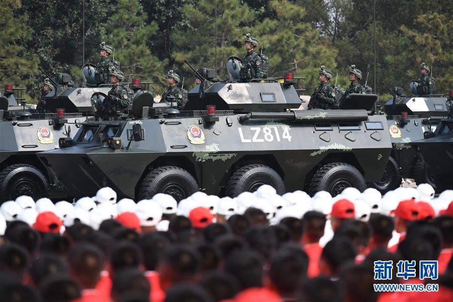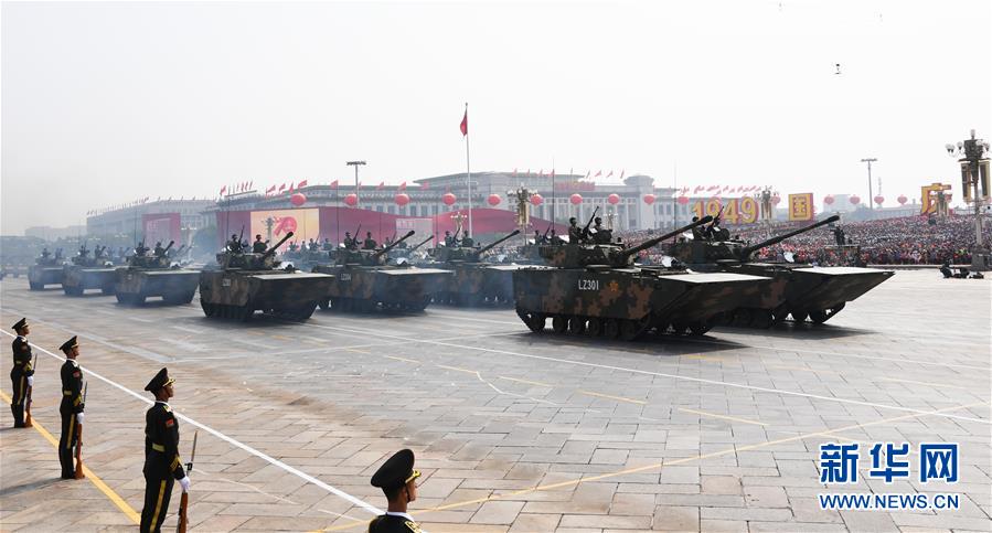 10月1日上午,庆祝中华人民共和国成立70周年大会在北京天安门广场隆重举行。这是两栖突击车方队。 新华社记者李欣摄