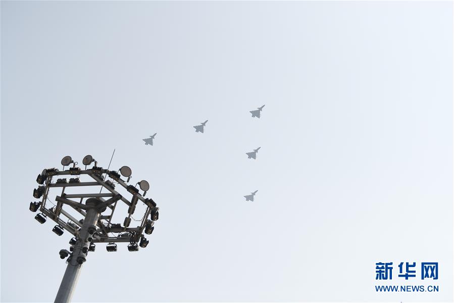10月1日上午,庆祝中华人民共和国成立70周年大会在北京天安门广场隆重举行。 这是歼击机梯队。 新华社记者 沙达提 摄