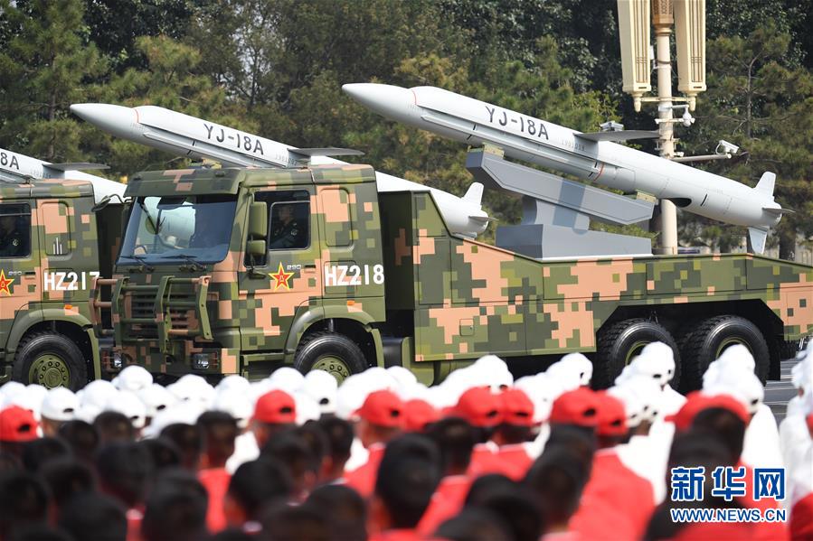 10月1日上午,庆祝中华人民共和国成立70周年大会在北京天安门广场隆重举行。 这是舰舰/潜舰导弹方队。 新华社记者 沙达提 摄