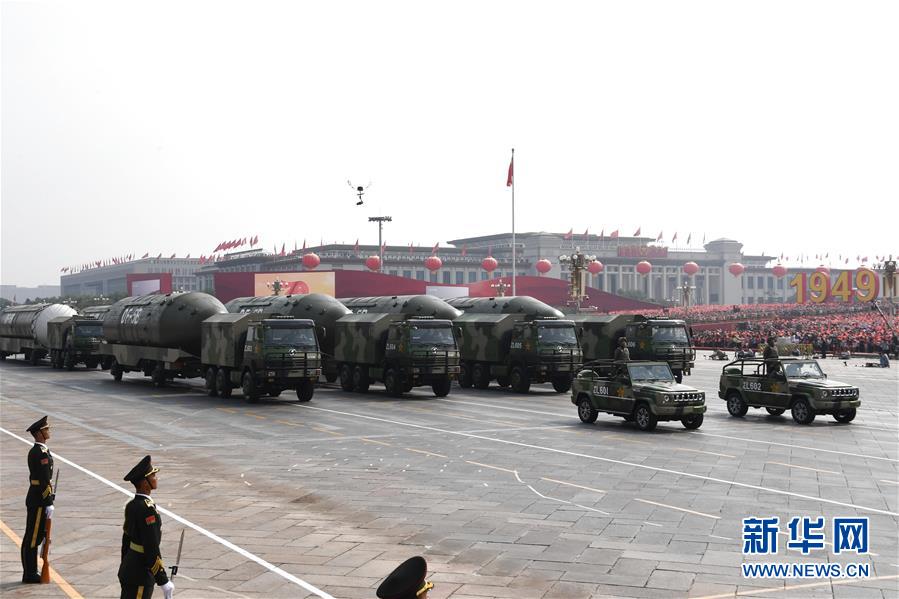 10月1日上午,庆祝中华人民共和国成立70周年大会在北京天安门广场隆重举行。这是东风-5B核导弹方队。 新华社记者李欣摄