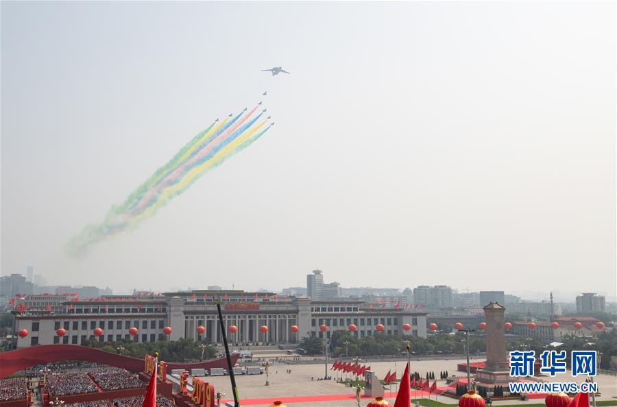 10月1日上午,庆祝中华人民共和国成立70周年大会在北京天安门广场隆重举行。 这是领队机梯队。 新华社记者 江宏景 摄