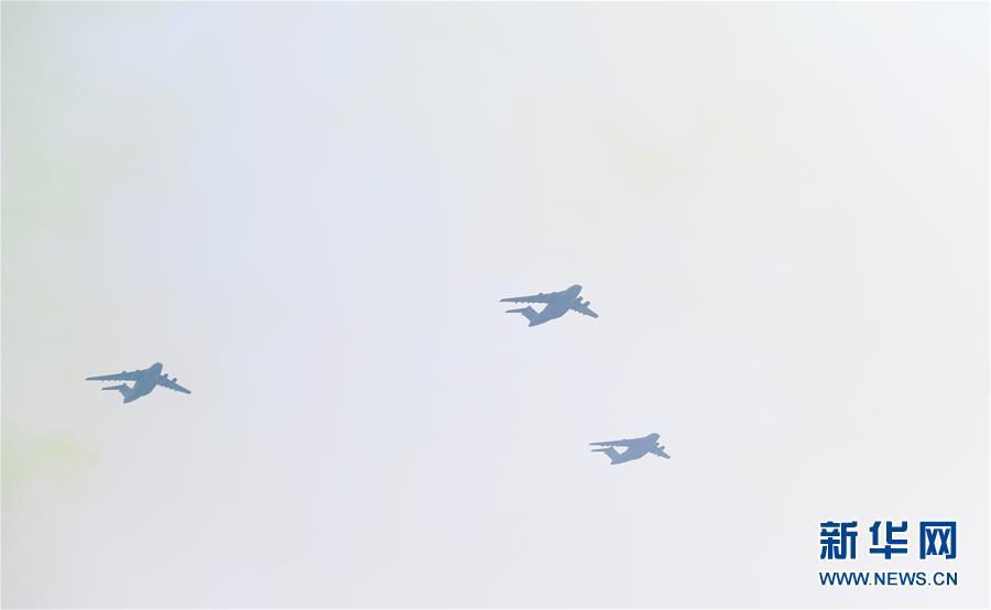 10月1日上午,庆祝中华人民共和国成立70周年大会在北京天安门广场隆重举行。这是运输机梯队。 新华社记者陈晔华摄