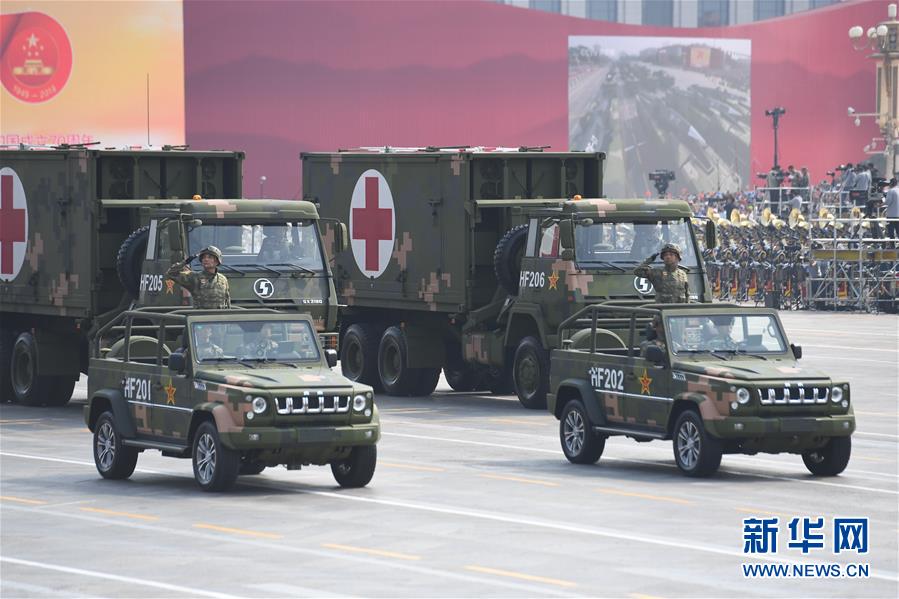 10月1日上午,庆祝中华人民共和国成立70周年大会在北京天安门广场隆重举行。这是抢修抢救方队。 新华社记者张晨霖摄