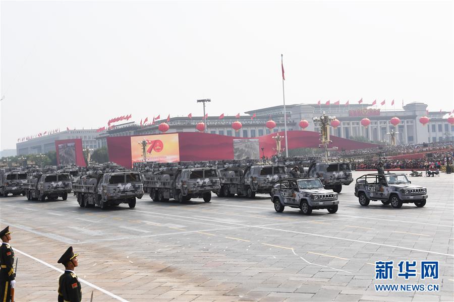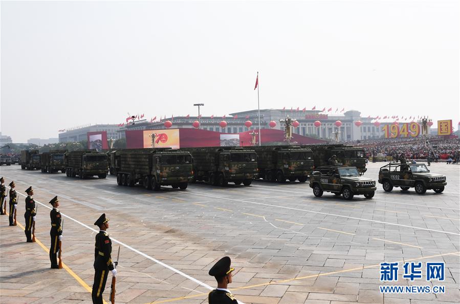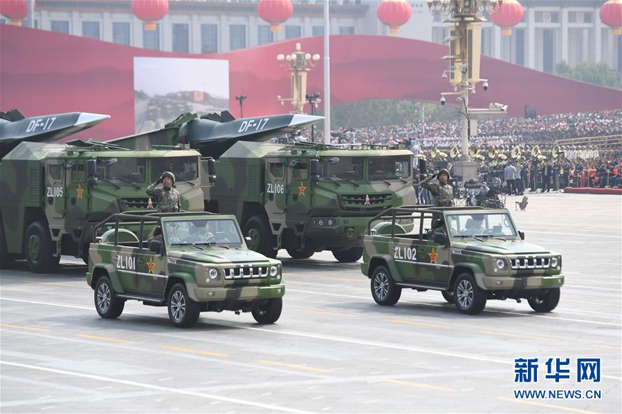10月1日上午,庆祝中华人民共和国成立70周年大会在北京天安门广场隆重举行。这是东风-17常规导弹方队。 新华社记者张晨霖摄