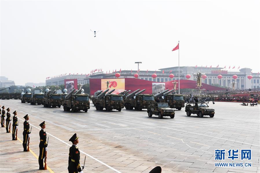 10月1日上午,庆祝中华人民共和国成立70周年大会在北京天安门广场隆重举行。这是舰载防空武器方队。 新华社记者李欣摄