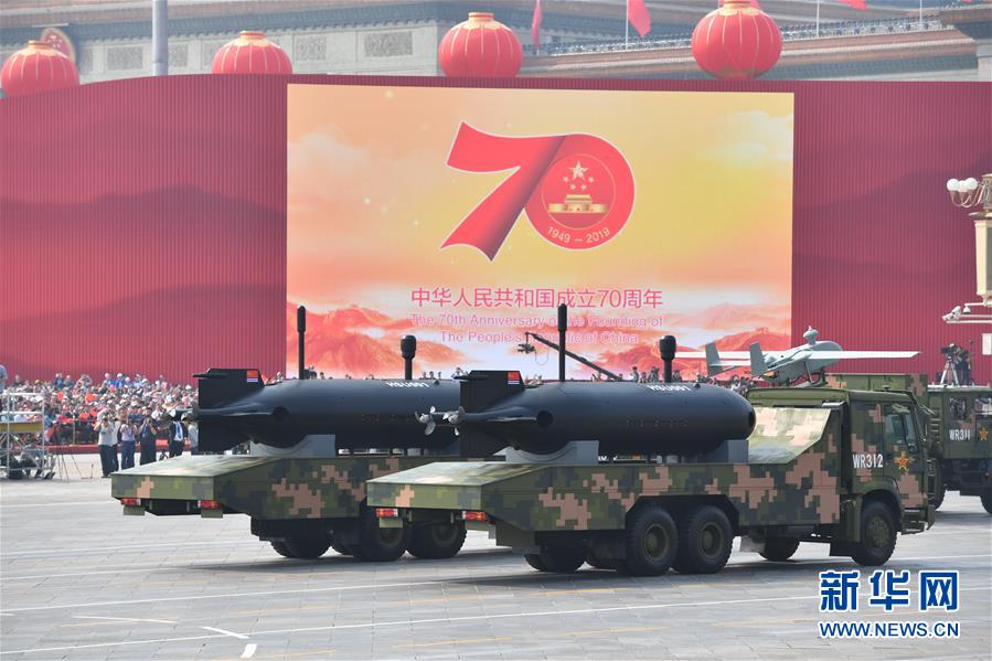 10月1日上午,庆祝中华人民共和国成立70周年大会在北京天安门广场隆重举行。这是无人作战第3方队接受检阅。 新华社记者 刘大伟 摄