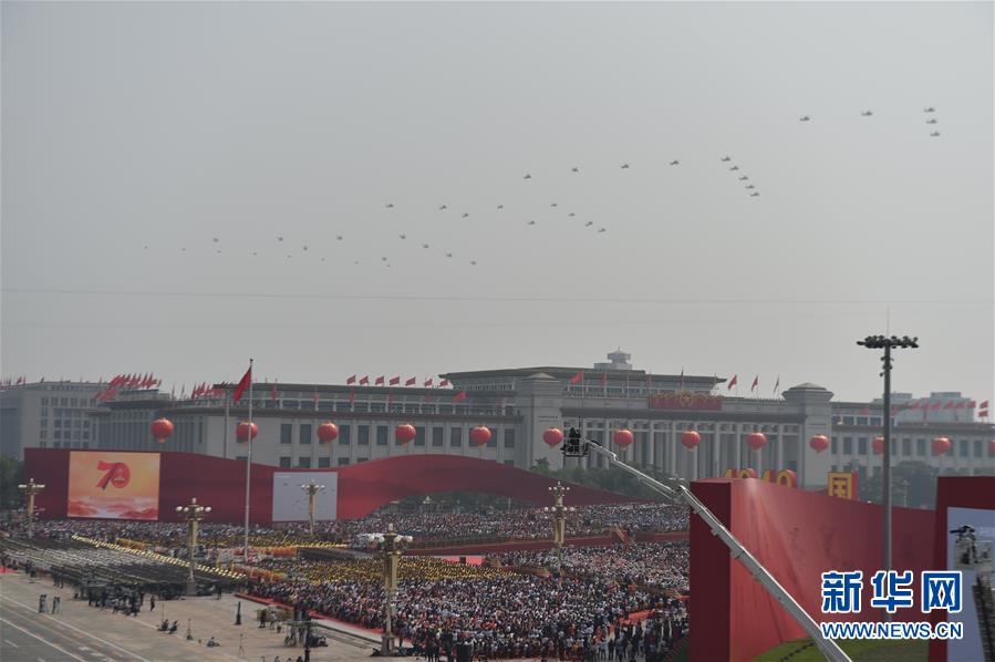 10月1日上午,庆祝中华人民共和国成立70周年大会在北京天安门广场隆重举行。这是支援保障机梯队。 新华社记者陈晔华摄