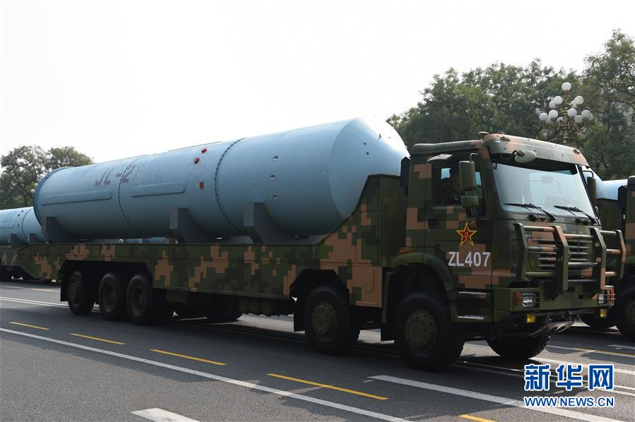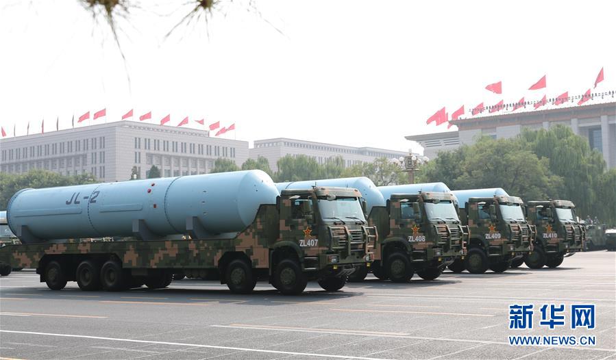 10月1日上午,庆祝中华人民共和国成立70周年大会在北京天安门广场隆重举行。这是受阅的巨浪-2导弹方队。 新华社记者 丁海涛 摄