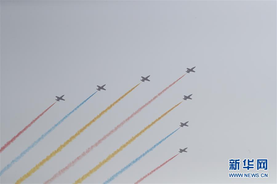 10月1日上午,庆祝中华人民共和国成立70周年大会在北京天安门广场隆重举行。这是受阅的空中梯队。 新华社记者 王晔 摄