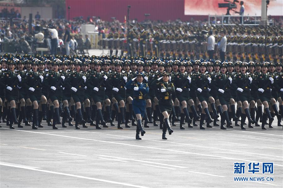 10月1日上午,庆祝中华人民共和国成立70周年大会在北京天安门广场隆重举行。这是女兵方队。 新华社记者张晨霖摄