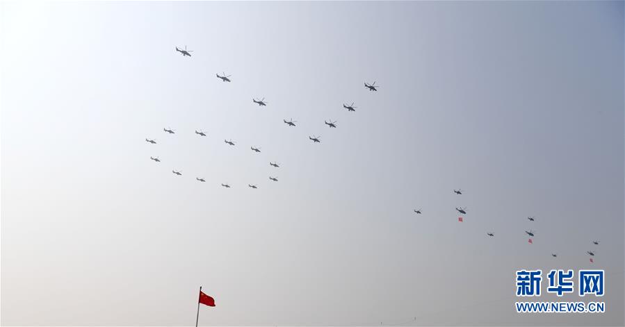 10月1日上午,庆祝中华人民共和国成立70周年大会在北京天安门广场隆重举行。 这是从天坛公园拍摄的陆航突击梯队。 新华社记者 贺长山 摄
