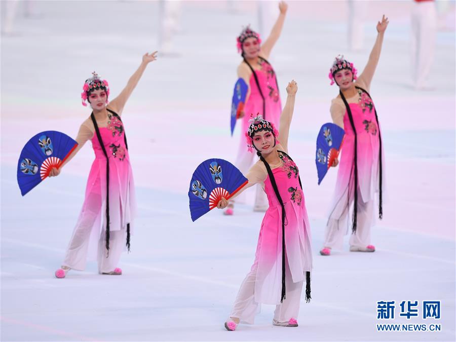 10月18日,第七届世界军人运动会开幕式即将在武汉体育中心举行。 这是开幕式前的暖场表演。 新华社记者姜克红摄