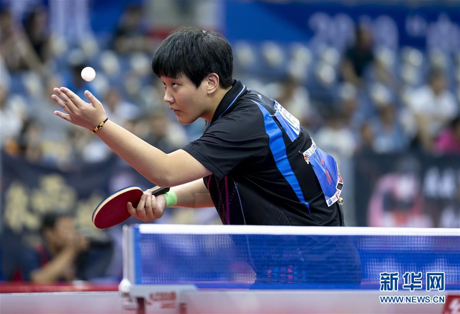 第七届世界军人运动会首次设立乒乓球项目,八一乒乓球队将代表我军出战,带着创军人荣耀的决心,队员们从身体、心理、技战术等方面做足了准备,众志成城,誓在军运会赛场上捍卫“国球”荣光。 图为八一乒乓球队队员孙铭阳在2019年全国乒乓球锦标赛比赛中发球。(7月28日摄) 新华社记者熊琦摄