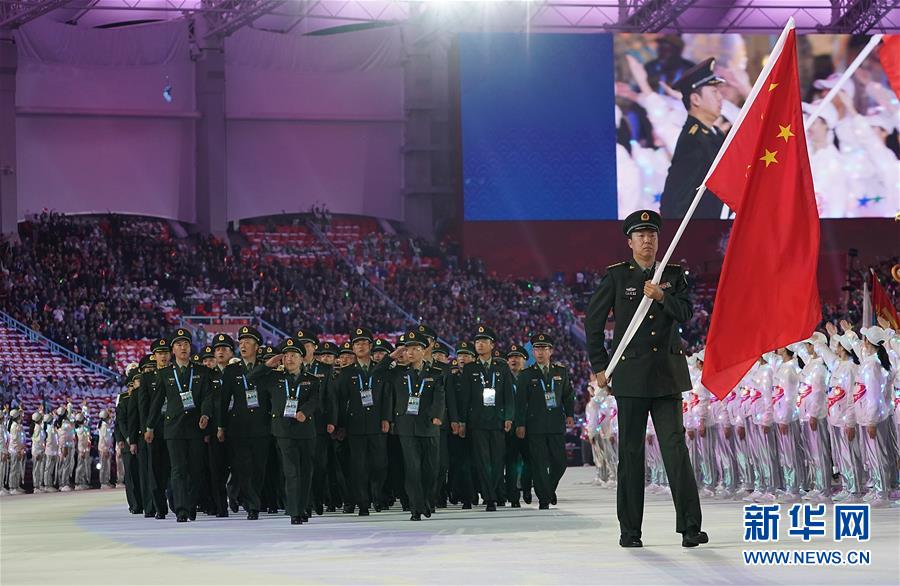 10月18日,中国代表团在开幕式上入场。 当日,第七届世界军人运动会开幕式在武汉体育中心举行。 新华社记者金良快摄