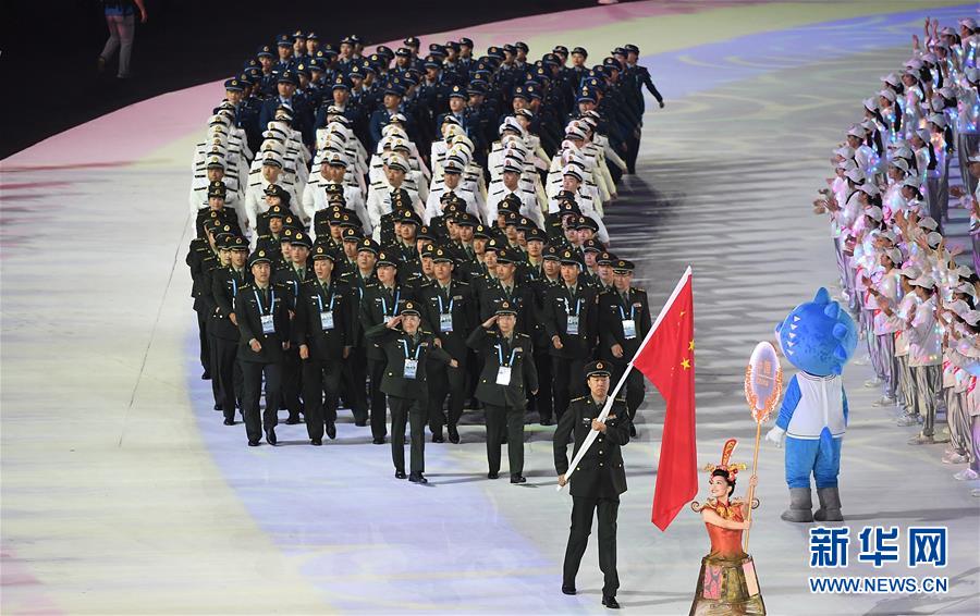 10月18日,中国代表团在开幕式上入场。 当日,第七届世界军人运动会开幕式在武汉体育中心举行。 新华社记者肖艺九摄