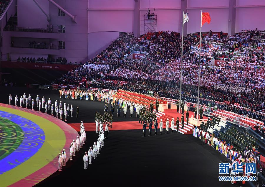 10月18日,第七届世界军人运动会开幕式在武汉体育中心举行。 这是开幕式现场(10月18日摄)。 新华社记者肖艺九摄