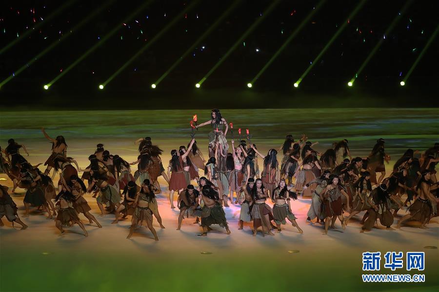 10月18日,演员在开幕式上表演。 当日,第七届世界军人运动会开幕式在武汉体育中心举行。 新华社记者刘续摄