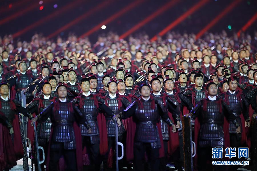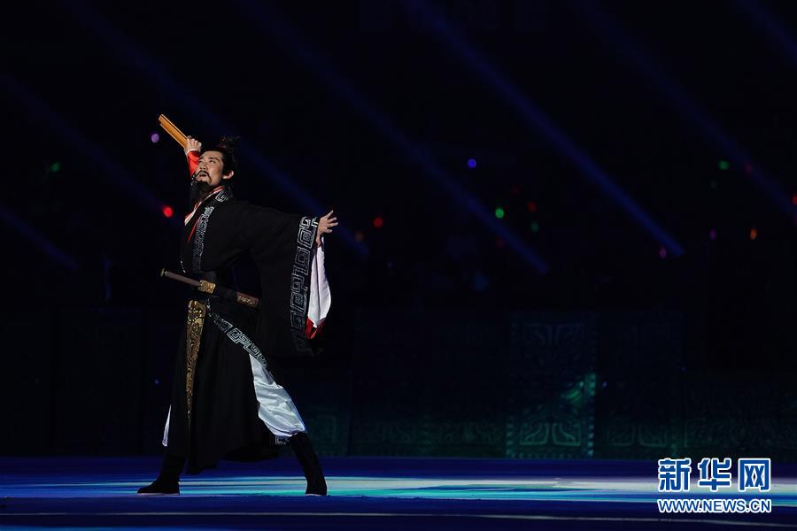 10月18日,演员在开幕式上表演。 当日,第七届世界军人运动会开幕式在武汉体育中心举行。 新华社记者刘续摄