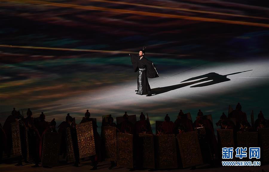 10月18日,演员在开幕式上表演。 当日,第七届世界军人运动会开幕式在武汉体育中心举行。 新华社记者程敏摄