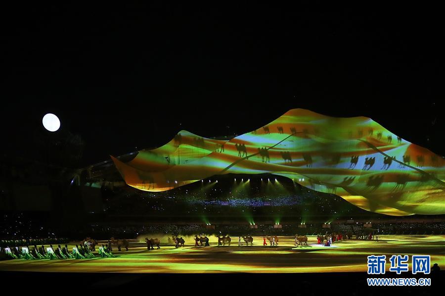 10月18日,演员在开幕式上表演。 当日,第七届世界军人运动会开幕式在武汉体育中心举行。 新华社记者刘续摄