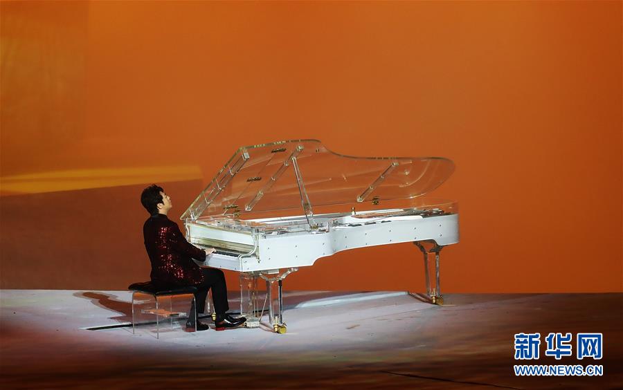10月18日,钢琴家郎朗在开幕式上表演。 当日,第七届世界军人运动会开幕式在武汉体育中心举行。 新华社记者琚振华摄