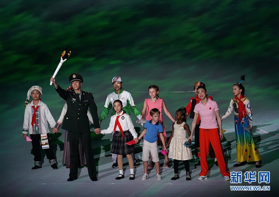 10月18日,演员在开幕式上表演。 当日,第七届世界军人运动会开幕式在武汉体育中心举行。 新华社记者刘续摄
