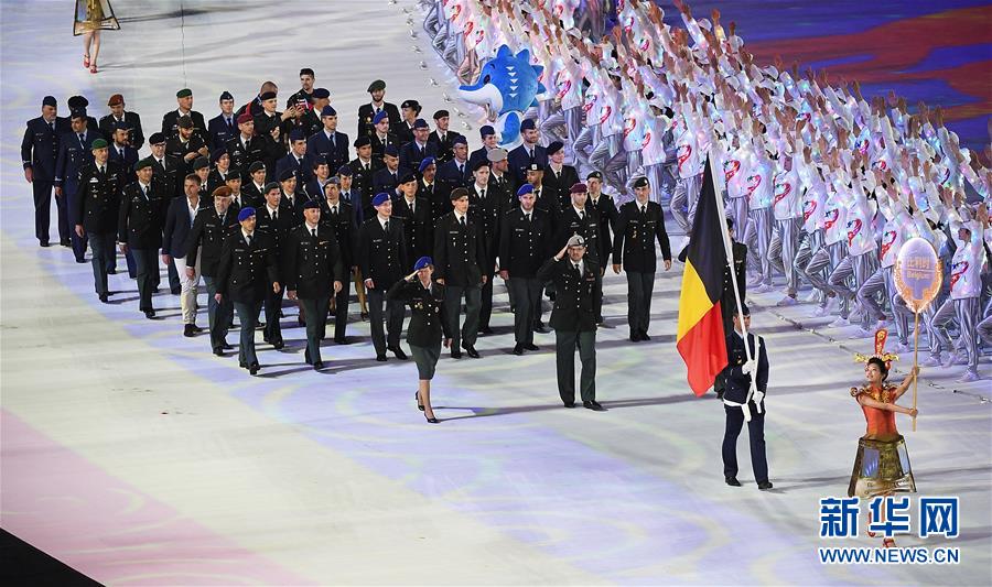 10月18日,比利时代表团在开幕式上入场。 当日,第七届世界军人运动会开幕式在武汉体育中心举行。 新华社记者肖艺九摄