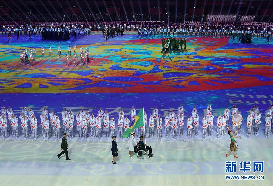 10月18日,巴西代表团在开幕式上入场。 当日,第七届世界军人运动会开幕式在武汉体育中心举行。 新华社记者李刚摄