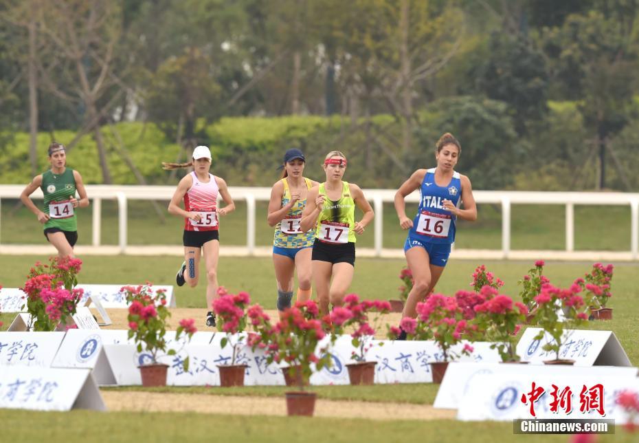 10月22日,第七届世界军人运动会现代五项女子个人激光跑资格赛在湖北省武汉市举行。激光跑要求运动员在3200米的跑步过程中完成射击4组,每组射击必须击中5次标靶,否则要等到规定时间才能继续跑步。射击与跑步的结合,让比赛充满乐趣和悬念。图为选手们在800米长的不规则赛道上奔跑。中新社记者 侯宇 摄