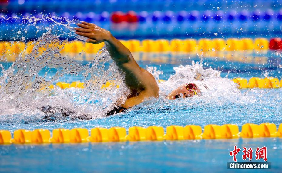 10月22日晚,在湖北省武汉市进行的第七届世界军人运动会女子4x200米自由泳接力决赛中,中国队以7分57秒06的成绩获得冠军。图为中国队张雨涵在比赛中。中新社记者 张畅 摄