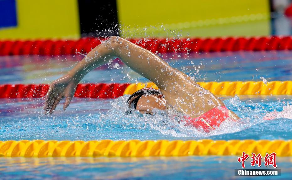 10月22日晚,在湖北省武汉市进行的第七届世界军人运动会女子4x200米自由泳接力决赛中,中国队以7分57秒06的成绩获得冠军。图为中国队王简嘉禾在比赛中。中新社记者 张畅 摄