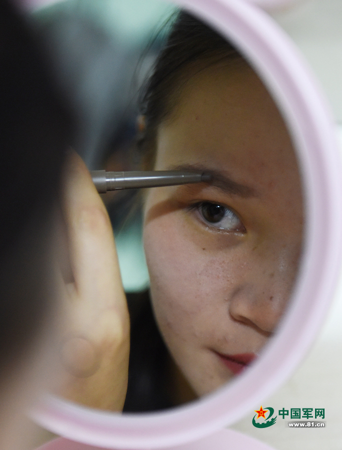 10月9日,北京,每个女孩都有爱美之心,但王培艳不爱红装爱武装。这是王培艳到部队报到前的最后一次化妆。徐伟 摄
