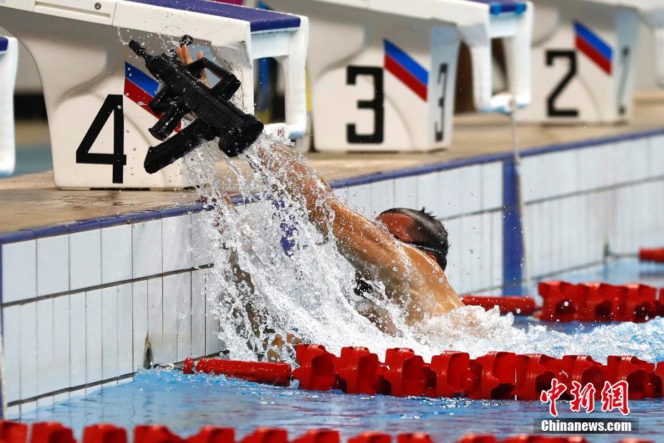 武汉军运会海军五项比赛举行 波兰选手获男子组实用游泳单项第一名